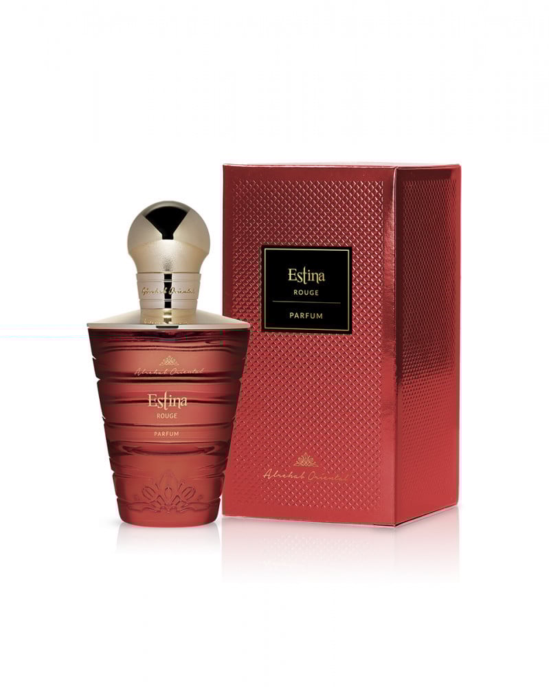 عطر ايستينا روج من مجموعة Alrehab Oriental مجموعة زهرية شرقية للجنسين’ ترتكز قوة العطر في نفحاته الخشبيةالنفحات، تركيبة مستوحى من الكريستال الأحمر الدموي، برائحة الزهور الشرقية المناسبة للرجال والنساء لون الزجاجة الأحمر يعكس دفئ وقوة هذا العطر الذي يجمع بين الفخامة وبهجة الحواس .